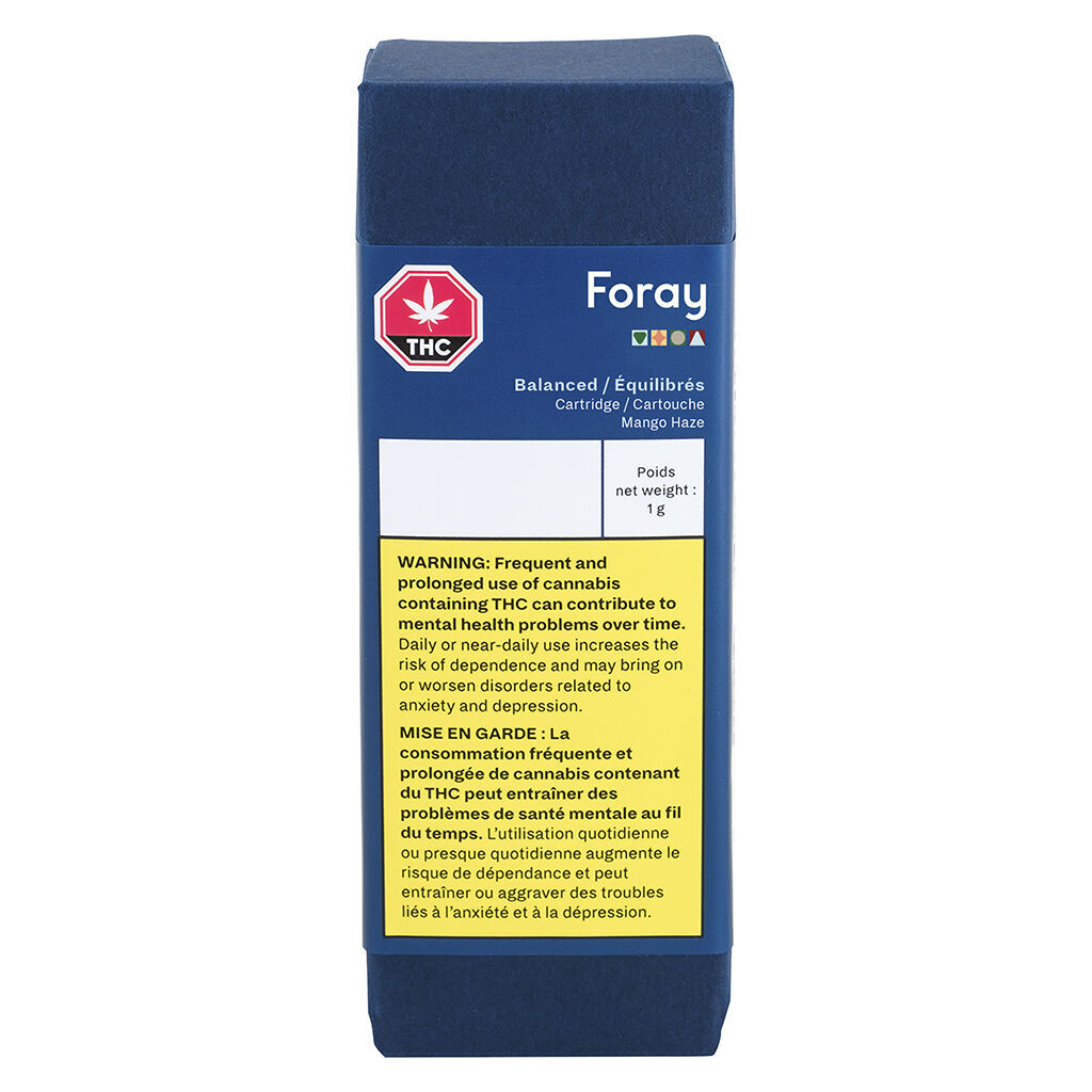 Foray’s Mango Haze is a balanced (1 part THC to 1 part CBD) vape cartridge with a sweet citrus flavour and a subtle earthy undertones. This premium distillate is in a no-leak cartridge system and is calibrated to work best with Foray’s 510 Thread Battery. Foray is an approachable brand that aims to both celebrate and guide one’s foray into cannabis, ultimately inviting them to see cannabis differently.