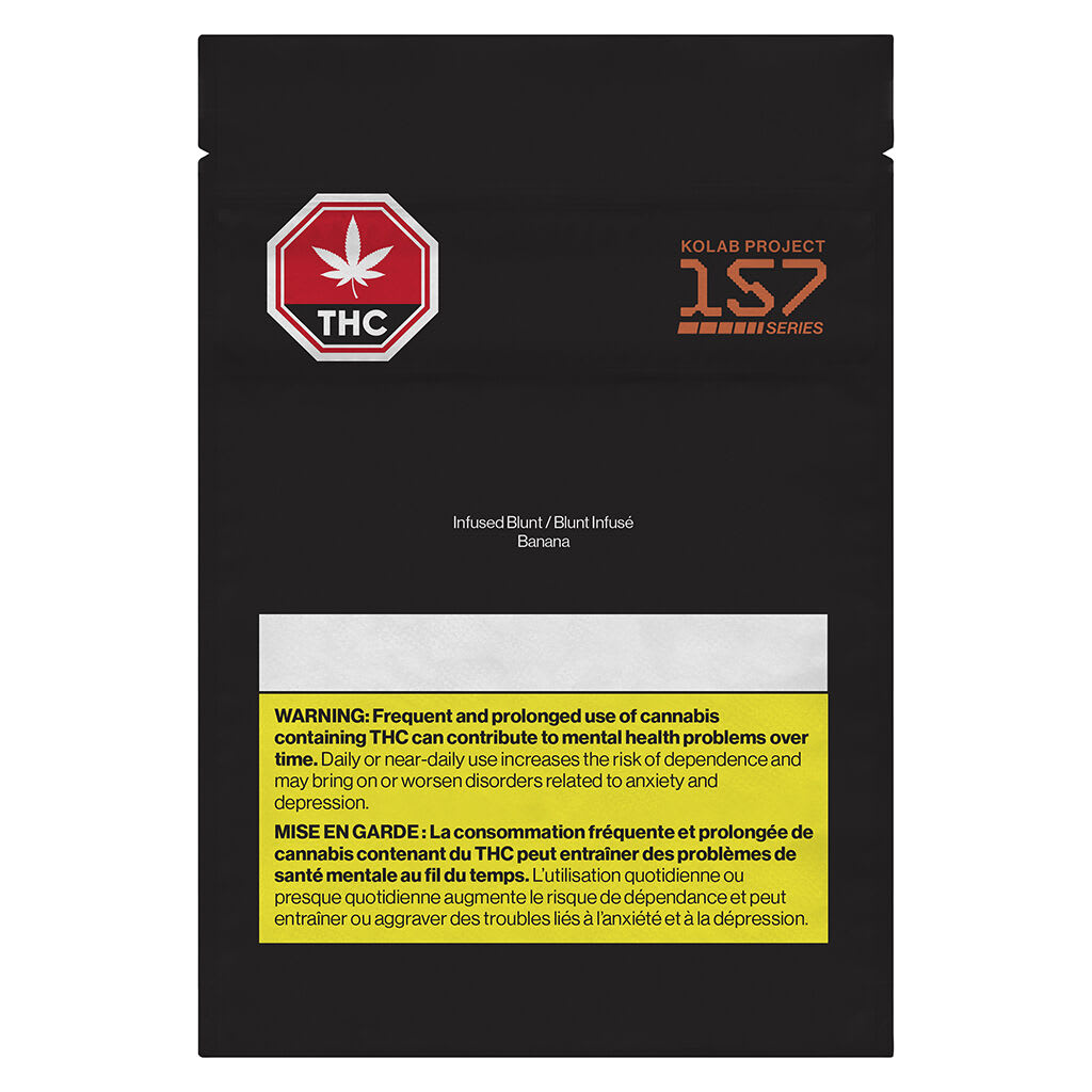 Kolab Project’s infused blunts are inspired by nature and influenced by culture to bring you a big, full flavoured experience. Infused with Banana Kush, this tropical tasting blunt is an indica with caryophyllene, myrcene and limonene as the dominant terpenes. The 157 Series of pre-rolled blunts blends quality flower with pure cannabis distillate, botanical terpenes and other flavours to deliver a consistently precise experience, you’ll believe it when you feel it. The Cutting Edge of Ancient Technology.