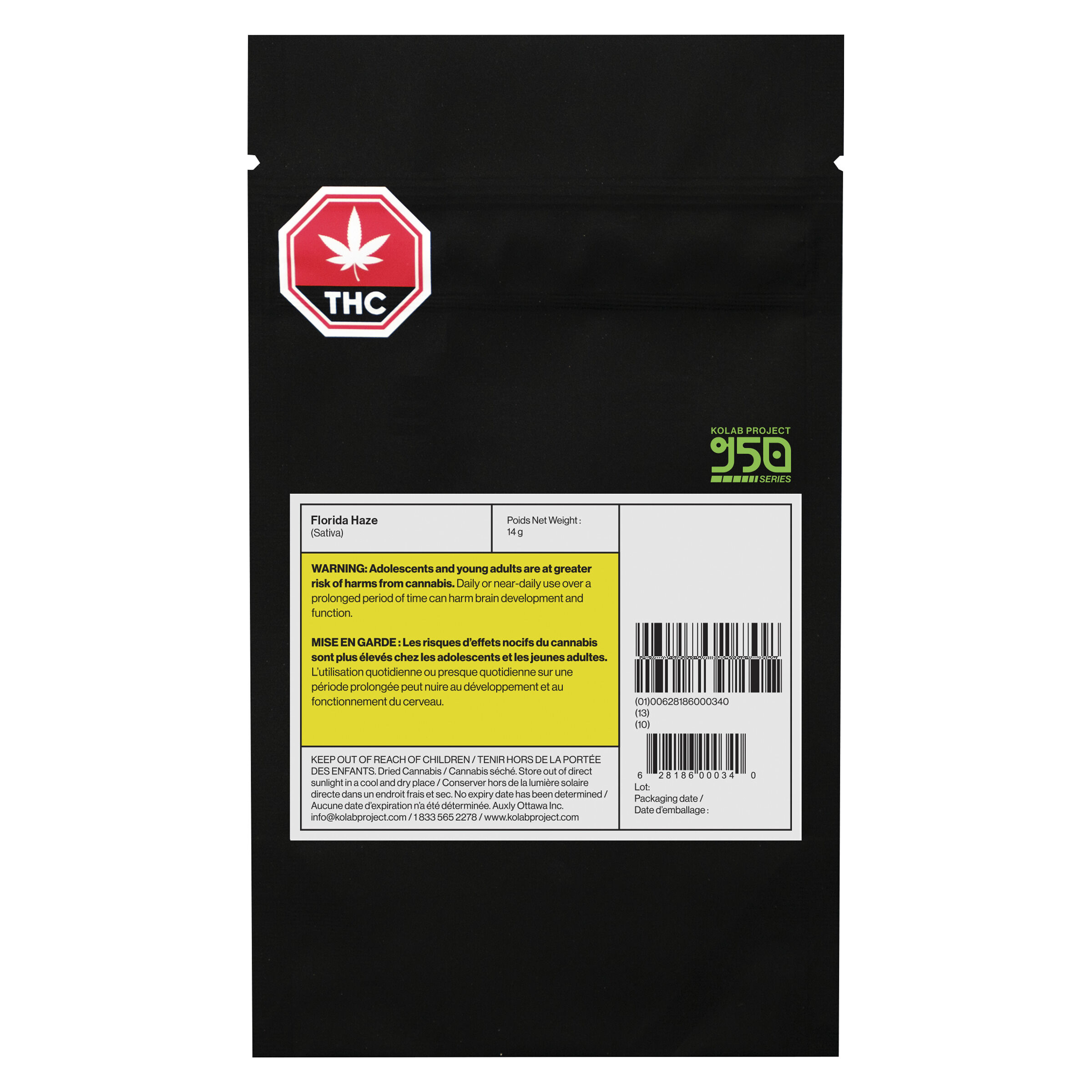 950 Series Florida Haze is a high THC, sativa-dominant cross between The White x Nigerian strains. Rich with myrcene, ocimene, and limonene creating a harmonious blend of sour and diesel aromas and flavours.