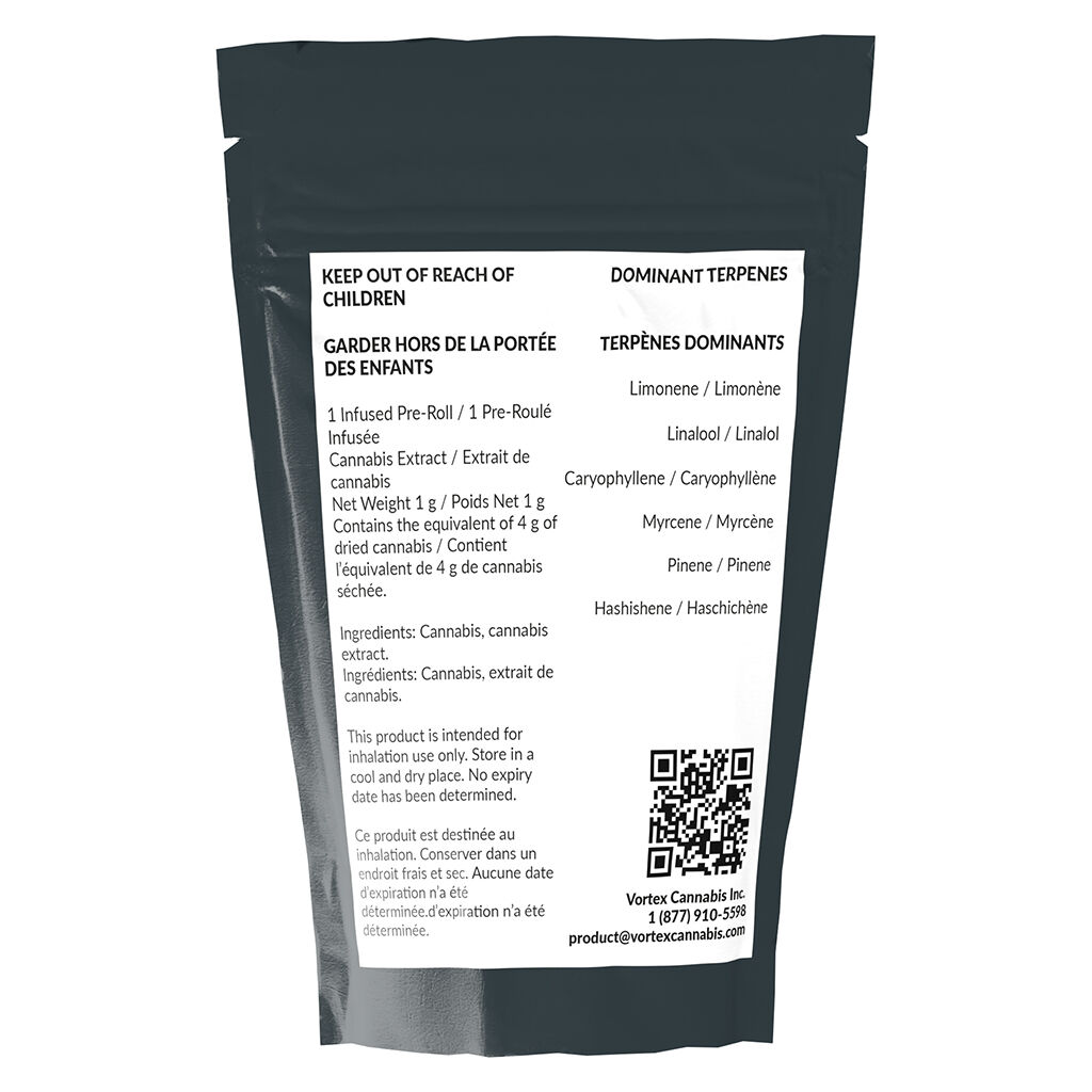 The Vortex Hash infused pre-roll is made using a 50/50 blend of potent single strain flower and Vortex Afghan Black Hash. Like our hash, this pre-roll is smooth burning and dank. Prefect for you legacy smokers!