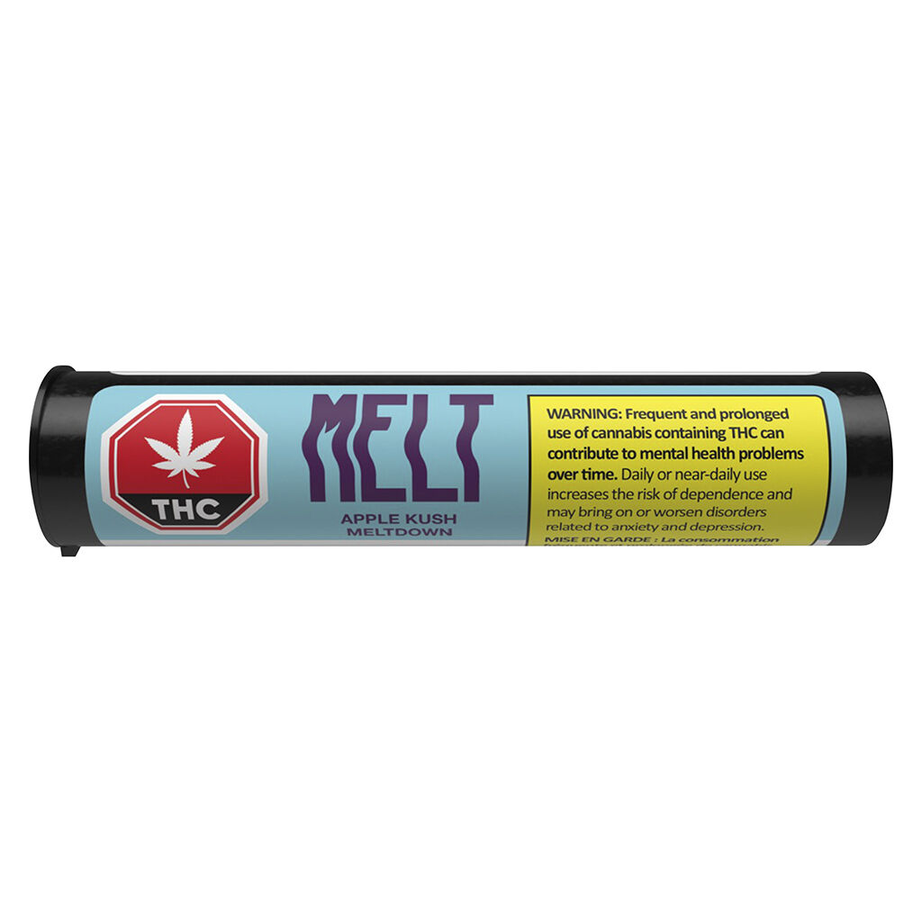 Apple Kush paired with THC distillate and carefully infused with terpenes. This fusion amps up the strain’s natural apple aromas & flavours and charges the pre-roll to a Meltdown inducing 40-46% THC. Made with quality whole flower inputs, and rolled in vegan, responsible forestry certified paper.