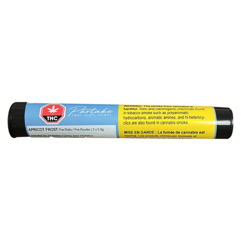 Apricot Frost Pre-Roll 3 Pack by Partake features 3 x 0.5g hybrid joints made from GP x Snowman. Expect sweet apricot flavor with smooth, balanced effects that relax the body and uplift the mind—perfect for any time of day.