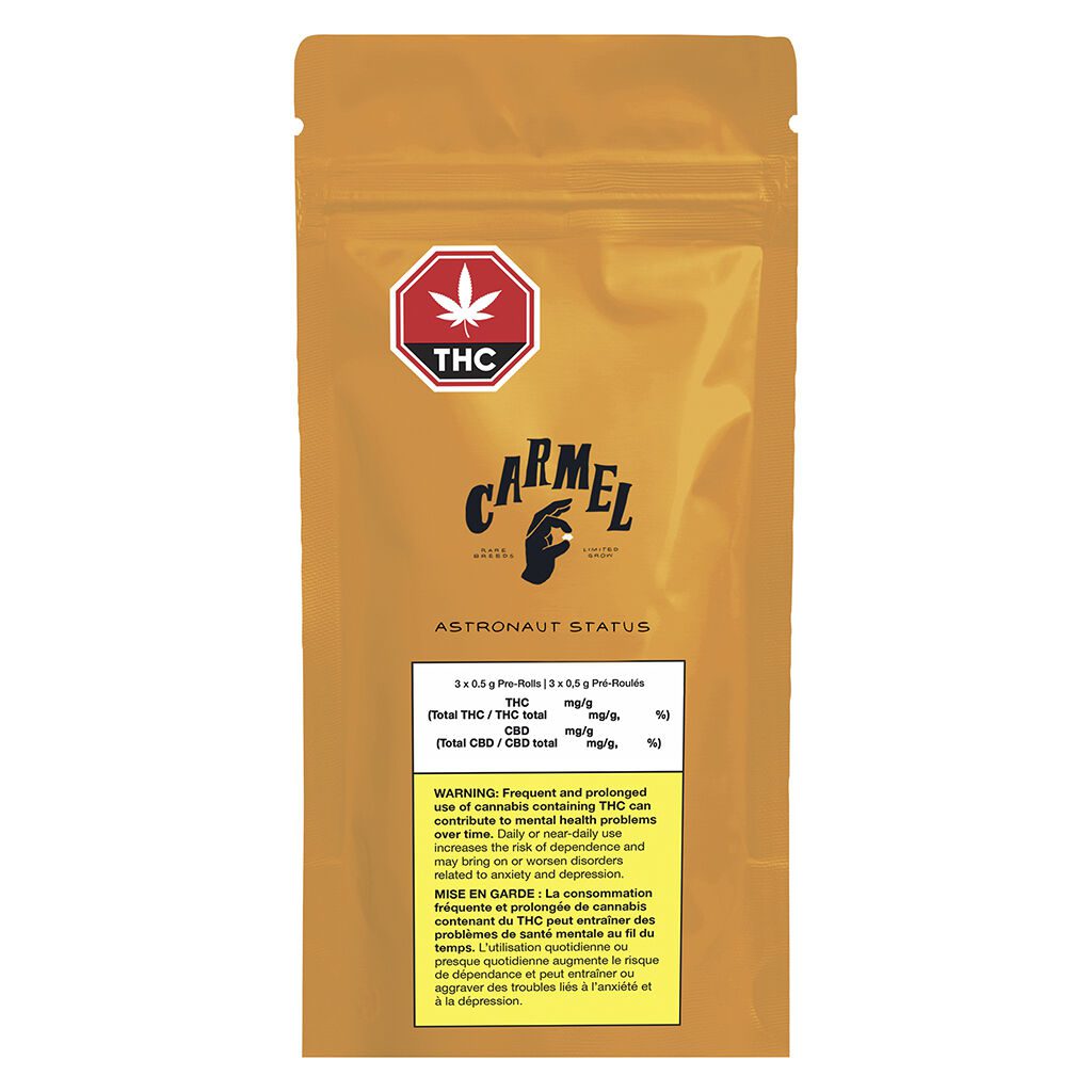 Carmel continues their commitment to excellence in the Multi-Pack Pre-Rolls category by using 100% whole flower, never settling for trim. Each 0.5g joint is meticulously rolled into a slim cone for an optimal burn rate and airflow. To ensure the delicate trichomes and “loud” aromas are preserved, these pre-rolls are hand-packaged in sleek glass tubes and sealed with natural cork tops. This artisanal approach guarantees that the Astronaut Status Pre-Rolls 3 Pack arrives as fresh as the day it was rolled. Ideal for those who appreciate rare genetics and a potent, complex high, this pack is a must-try for any craft cannabis enthusiast.
