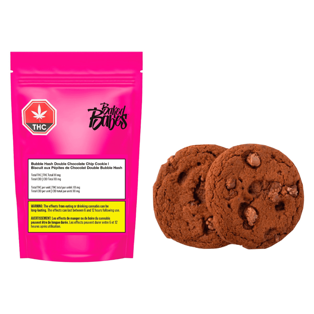 Indulge in the rich, chewy goodness of Bubble Hash Double Chocolate Chip Cookies by Baked Babes. Combining the best of a brownie and a cookie, each pack contains two soft-baked treats infused with high-quality bubble hash for a premium, full-spectrum experience. With 5mg of THC per cookie (10mg total), these decadent delights are crafted with Dutch-pressed cocoa and dark chocolate chips, offering a sophisticated, consistent way to elevate your day.