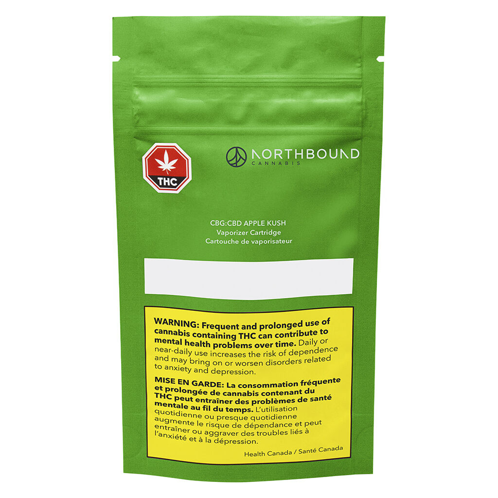 Apple Kush is a high CBG and high CBD vape cartridge featuring a blend of natural terpenes to create balanced aromas of crisp apple with an earthy and citrusy profile for a refreshing flavour. Made with a hemp-based mouthpiece and packaged in mylar bags made from more than 40% post-consumer material. Our naturally derived CBG contains no synthetic material.