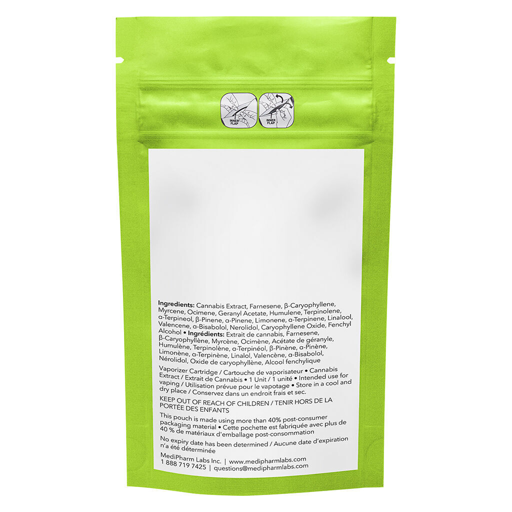 Our high CBG, high THC vape cartridge features a blend of terpenes to create a robust lime, citrusy and earthy profile with a refreshing flavour. Dominant in farnesene, caryophyllene and beta-myrcene.