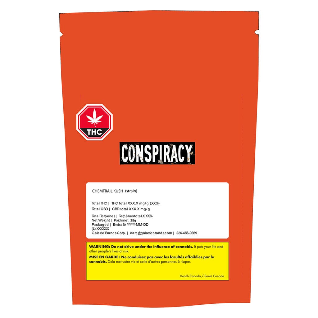 Conspiracy Chemtrail Kush (28g) is a high-intensity indica flower that delivers heavy-duty potency in a value-driven bulk format. With a pungent diesel aroma and a deeply relaxing body high, this strain-specific bag is built for those who demand “Conspiracy” level quality every single day. Expose the gas—shop Conspiracy today.