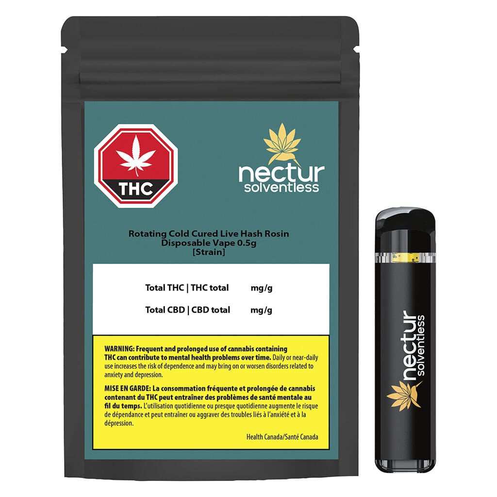 Elevate your portable sessions with the Cold Cured Live Hash Rosin AIO 0.5g by Nectur Solventless. Featuring the Active710 Air Mini postless hardware and rotating craft strains. Shop now for a true-to-flower solventless experience!