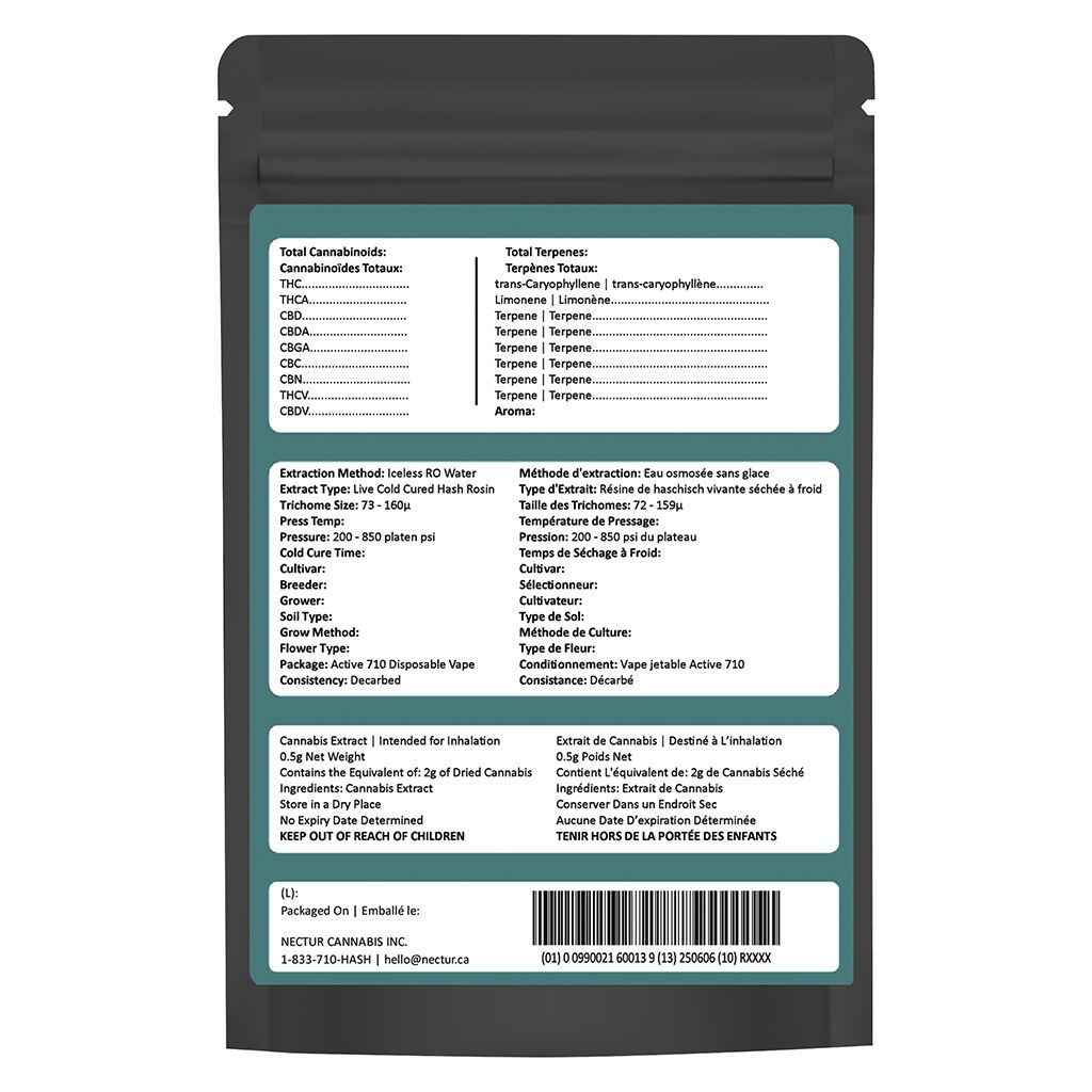 The technical hardware is just as impressive as the oil. Nectur utilizes the Active710 Air Mini, a cutting-edge postless disposable vape designed specifically for high-viscosity live rosin. The postless architecture eliminates common clogging issues and prevents the “burnt” taste often associated with standard cartridges, ensuring a smooth, flavorful vapor from the first hit to the last. This synergy between handcrafted, solventless rosin and advanced heating technology provides a clean, potent, and discrete way to enjoy boutique-tier cannabis. For those seeking the pinnacle of portability without sacrificing the integrity of a traditional dab, the Nectur AIO Disposable is the ultimate choice.