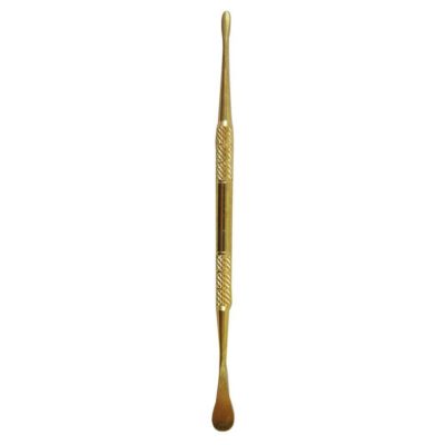 Dab Spoon Gold is perfect for use with concentrates, honey oil extracts, concentrated oil, concentrated medication and all vapor globes. The spread tool is great for crumble or less stable concentrates because you can use it as a shovel or drip from it if you are lucky enough to have terpenes. These dab tools are double ended with two different size spoons for all your dabbing needs.