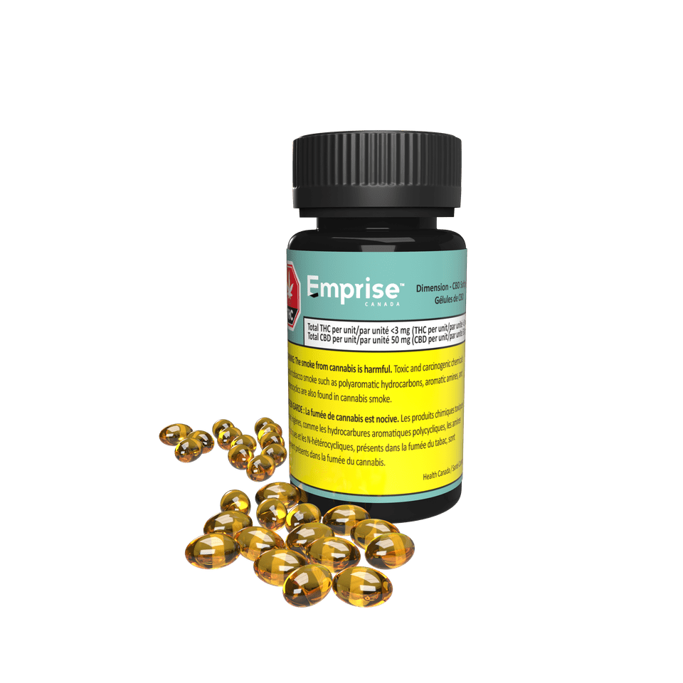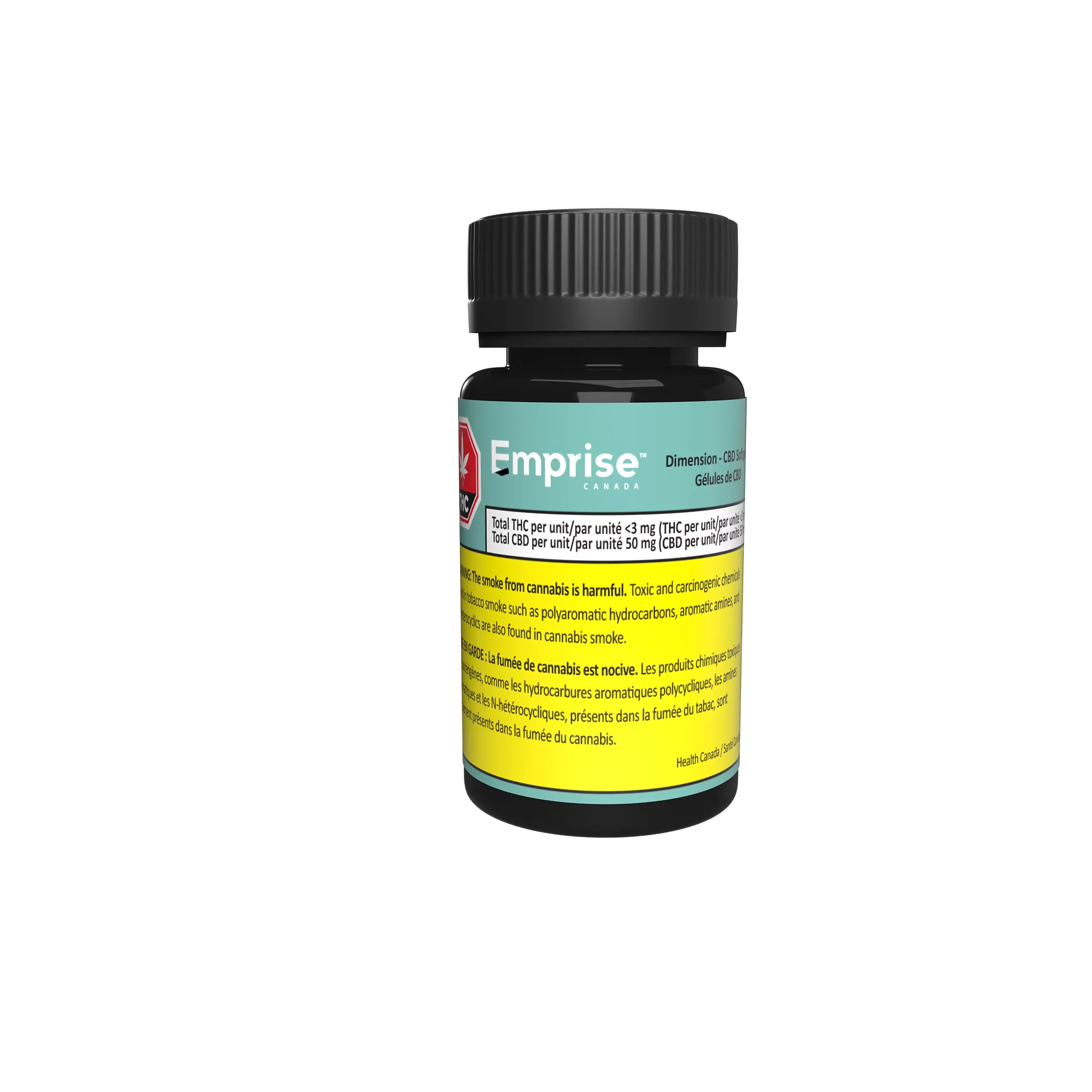 Emprise’s Dimension CBD is a CBD-dominant formulation. Each softgel delivers 50 mg CBD.