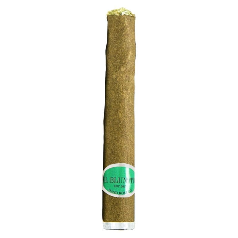 El Bluntito Centrado is a hybrid that contains full flower buds, broken down by hand (never ground), hand rolled in tobacco-free natural hemp wraps, finished with custom glass filter tips and encased in a resealable glass jar
