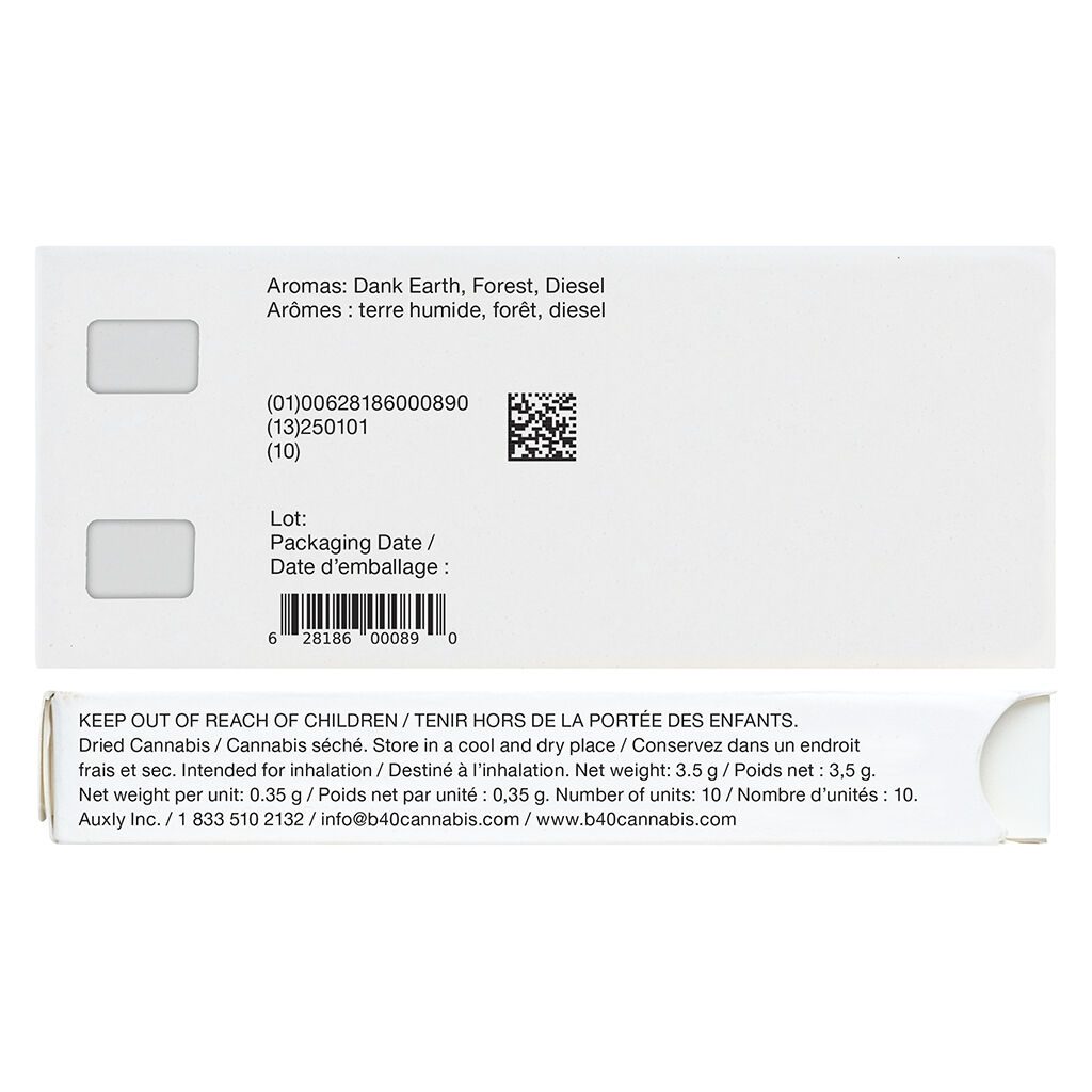 Packaged in a resealable tray, the Fire Breath Pre-Rolls 10 Pack by Back Forty preserves freshness and potency between sessions. The slim size makes these pre-rolls approachable for new users while still delivering the full flavour and effect of a premium indica-dominant strain. This product is an excellent choice for those seeking a high-quality, convenient, and strain-focused pre-roll option.