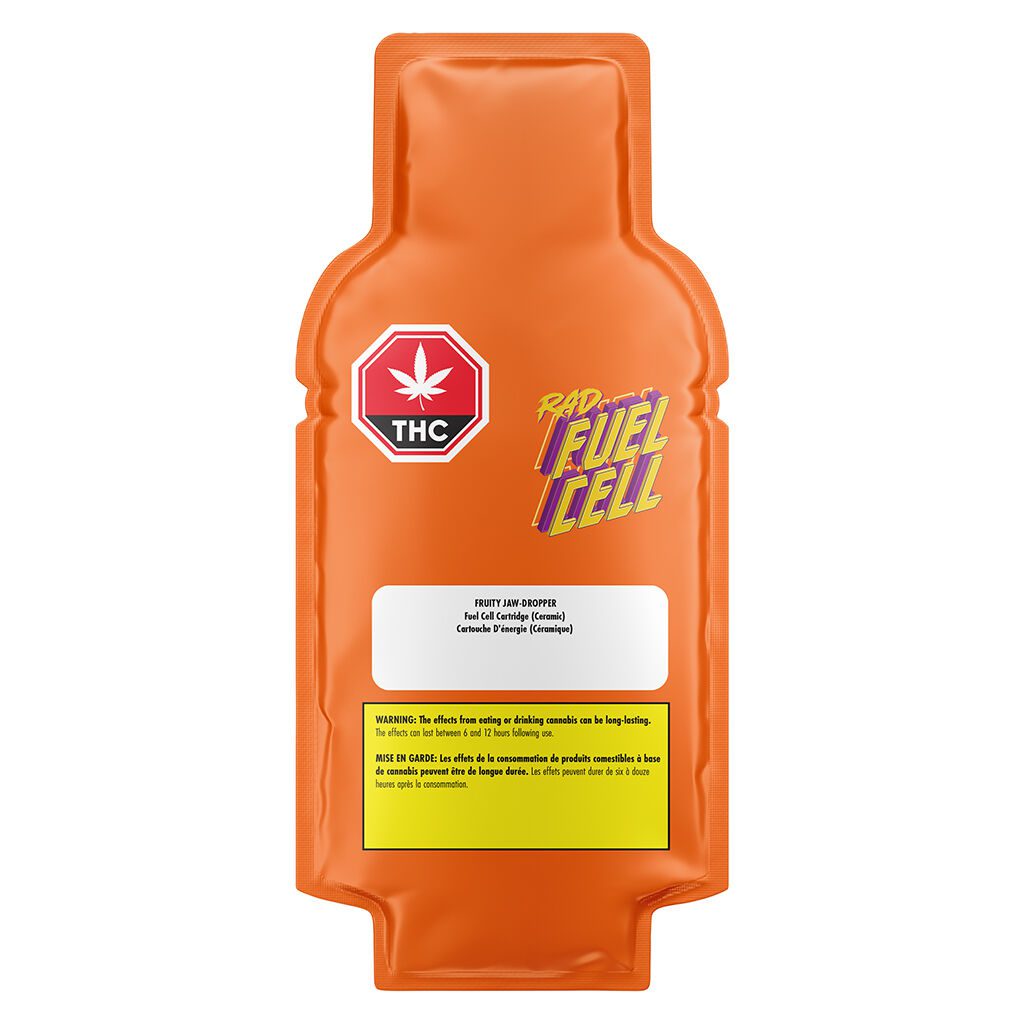 Indulge in the Fruity Jaw-Dropper Fuel Cell 1g 510 by RAD. This high-potency hybrid features triple-distilled extract and zesty citrus flavors in a premium ceramic cartridge. Shop now for a sweet, powerful hit!