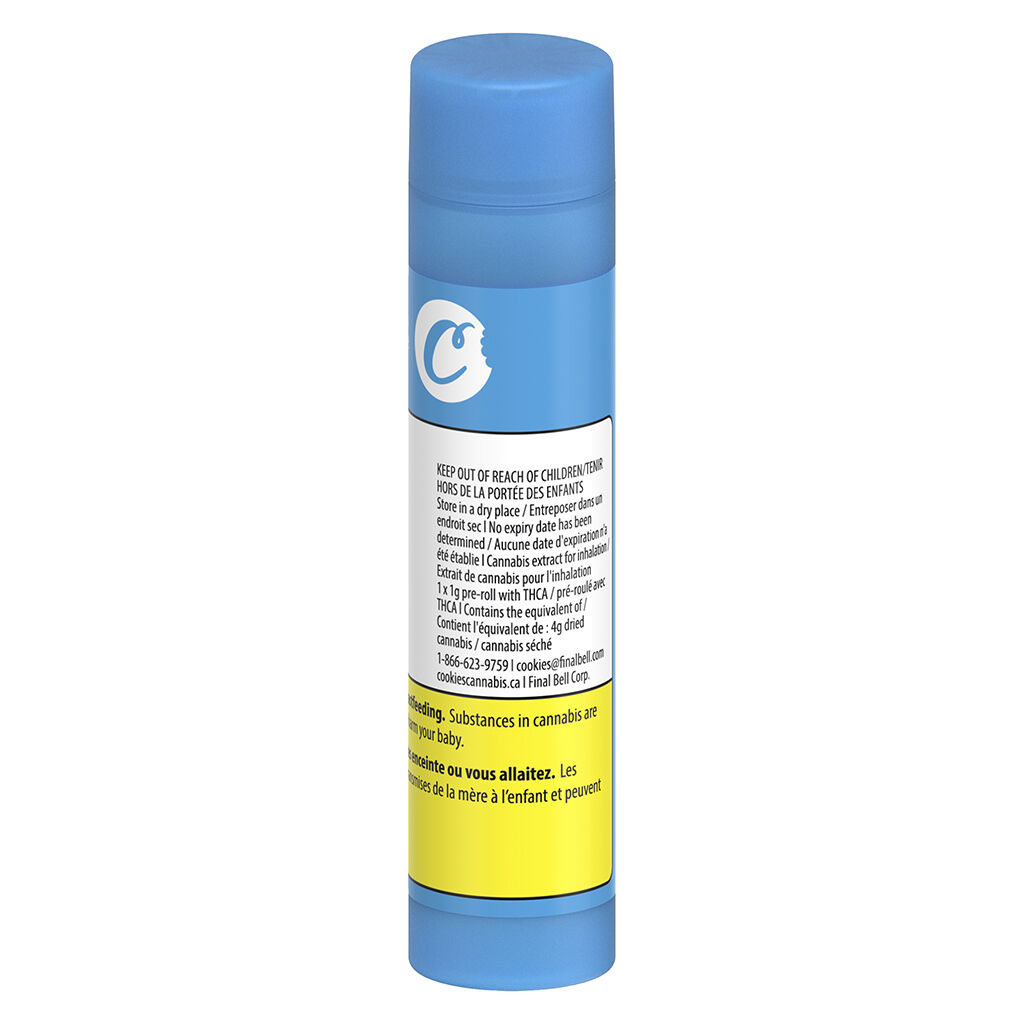 The legendary Georgia P. in a pre-roll infused with premium diamonds and finished with a ceramic tip for enhanced air flow and an even burn all the way through. This favourite of the Cookies Fam was bred by crossing Kush Mints x Gellati, and is beloved by connoisseurs for its sturdy structure and delicious flavour. The strain is known for having a pungent aroma that smells like fresh peach, with a sweet berry flavour, hints of nutty dough and rich cherries.