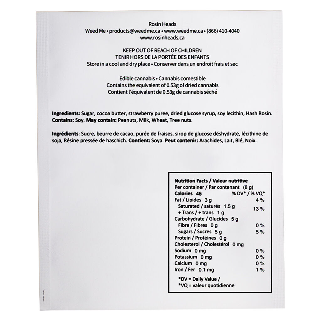 Hash Rosin Coins Strawberry, a premium chocolate product that you won’t find anywhere else. Each chocolate coin is infused with 5 mg of strain specific live rosin, making it the ultimate treat for any cannabis connoisseur. The sweet and tangy flavour of real strawberry puree perfectly complements the natural terpene profile, making this a truly irresistible treat.