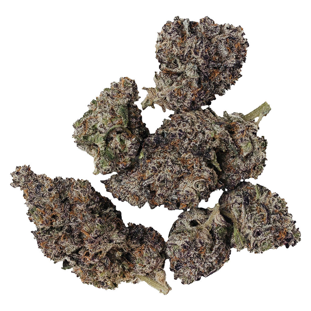 This flower is pure gas, a cross of Animal Mints and Pure Michigan. The flowers impress with dense lime green colour with royal purple highlights throughout, sparkling with a heavy frosting of trichomes.