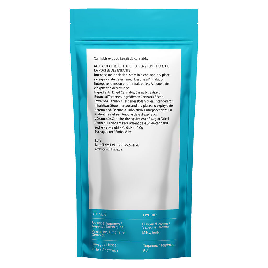 Infused CRL MLK Blunt by Ambr is a hybrid strain crossed from Y Life (CKS x Cherry Pie) and Snowman, offering sweet, earthy flavours with a creamy, cherry-fuel finish. Infused for added potency, it’s the perfect blend for any occasion.