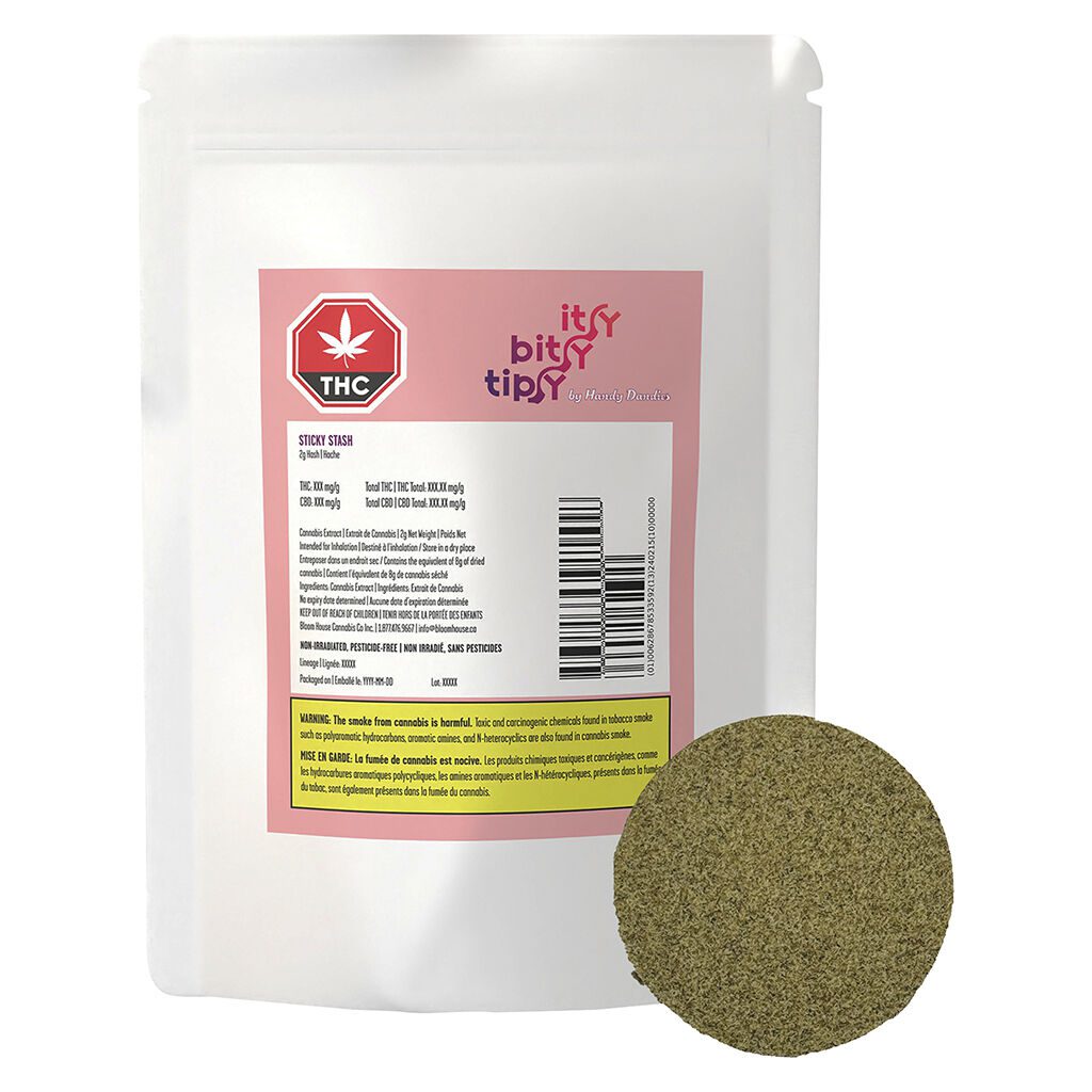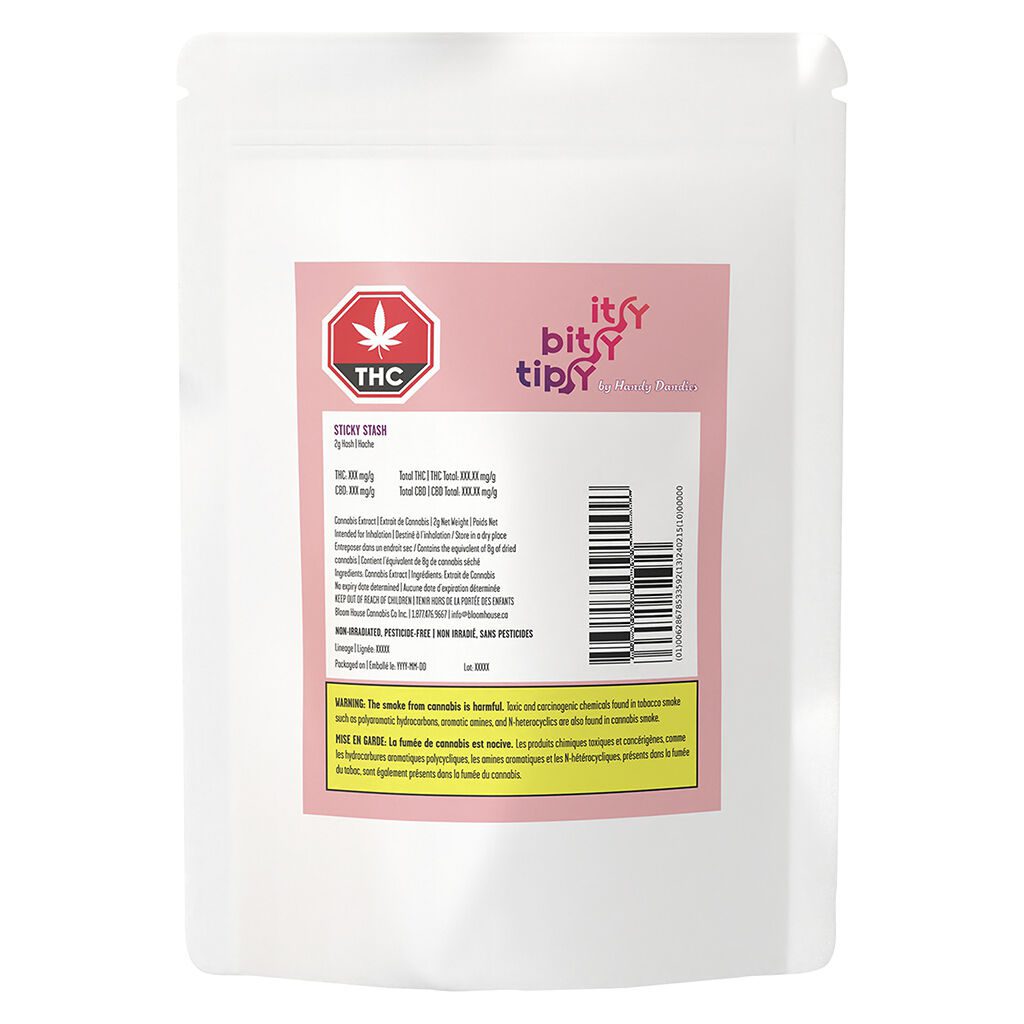 Itsy Bitsy Tipsy Sticky Stash Hash 2g by Handy Dandies is a premium pressed hash made from hand-trimmed, hang-dried cannabis for a smooth, rich, traditional experience.