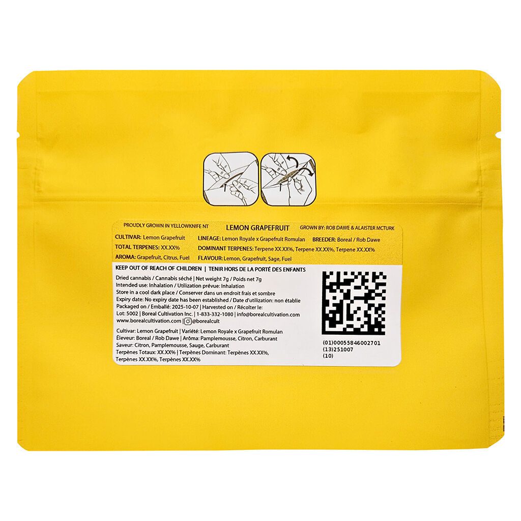 The Lemon Grapefruit 7g by Boreal is a high-potency hybrid blending Lemon Royale #13 and Romulan genetics. Enjoy intense citrus flavors with a savory, gassy finish. Shop now for a premium hybrid experience!