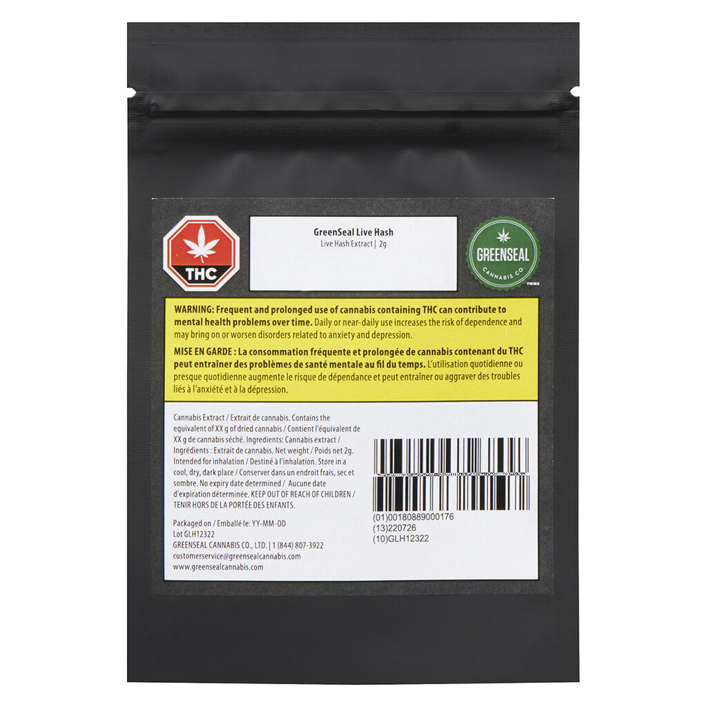 Is a proprietary in-house extract comprised entirely of fresh frozen kief collected from live indoor plants at the moment of harvest. Pressed pucks are individually stamped with the GreenSeal of approval, capturing the essence, terpenes, and potency of cultivars harvested at their absolute peak. Mix some Live Hash with ground flower to roll your own infused pre-rolls or enjoy the satisfying classic hash flavour all on its own in a pipe or bong.
