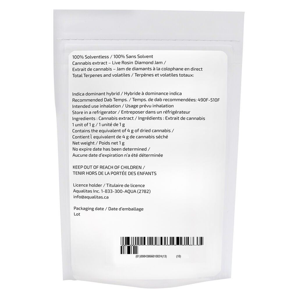 The premium flowers used for this extract are sun-grown under hoop-house in 200 gallon pots filled with living soil. Grown in Weedon, QC, these plants were tended by growers who are dedicated to respecting the trichomes. Hand-trim methods as well as immediate freezing upon harvest allow the living essence and aromas of the plant to be fully captured.