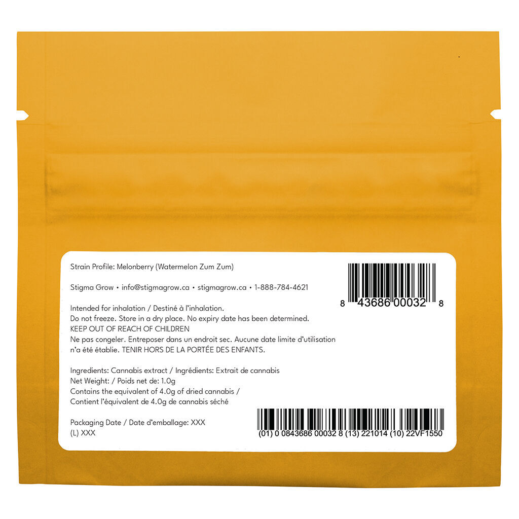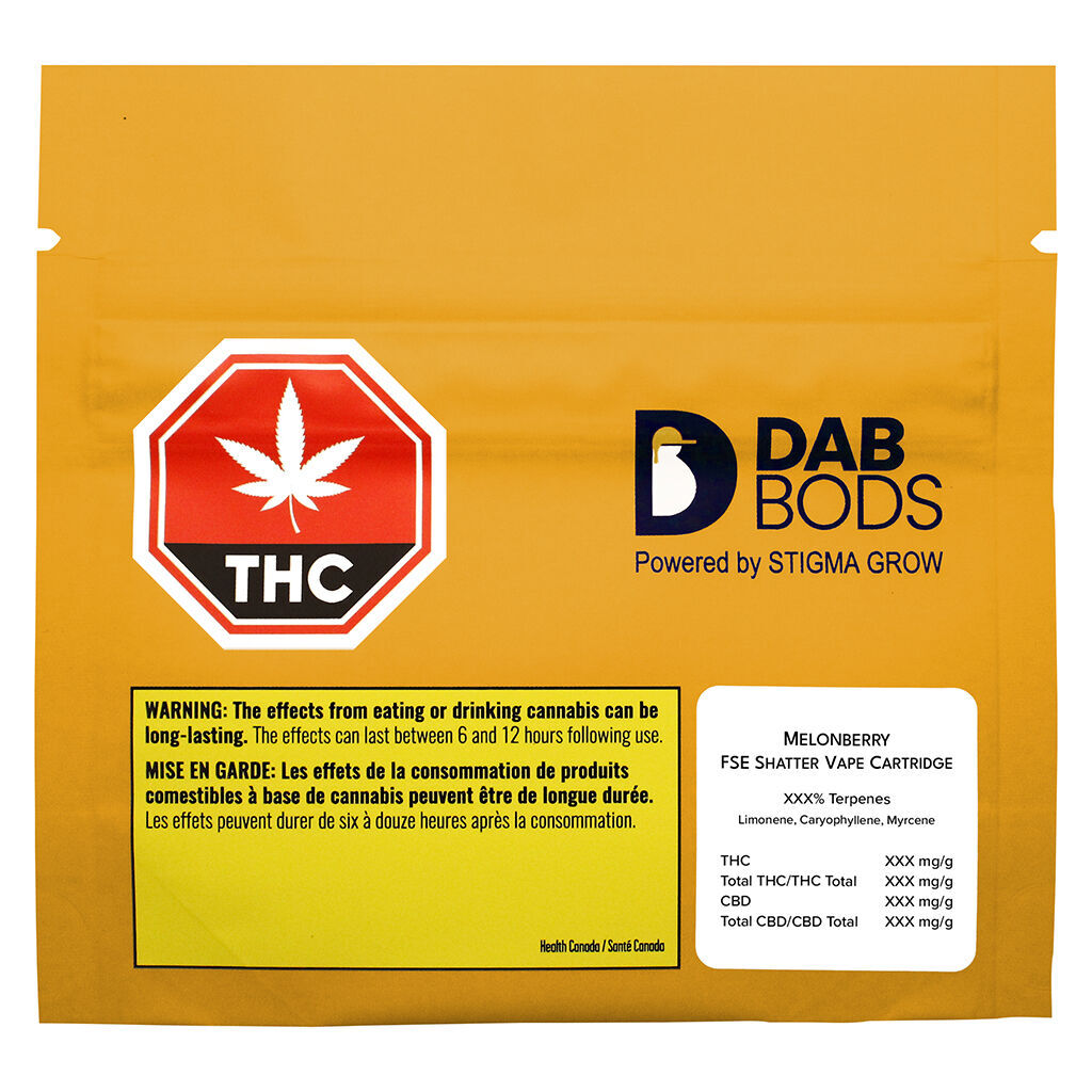 Dab Bods Melonberry FSE Shatter Vape brings to you live resin shatter in a convenient, discreet cartridge. Popular and potent, this fruity hybrid Watermelon Zum Zum strain offers a smooth smoking experience. Shatter vape cartridges offer easy to manage BHO cannabis concentrate that’s jam-packed with powerful potency and subtle fruit flavour and aromas. Featuring a complex mix of cannabinoids, terpenes and flavonoids that have been extracted via hydrocarbon processing (BHO), this unique vape cart offers an experience that benefits from the synergistic abilities (entourage effect) of a true full-spectrum product. Simply put, while some carts may use additives and distillates to attempt to replicate the taste and experience of popular strains, our shatter carts bring to you a pure product without the artificial extras.