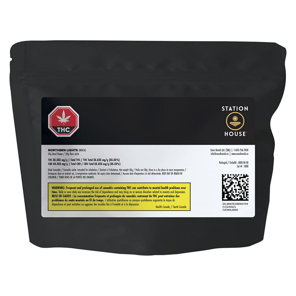 A classic indica-dominant Big Bag featuring Northern Lights, offering dense green buds with earthy pine aromas and subtle sweet skunky undertones in a full 28g format.
