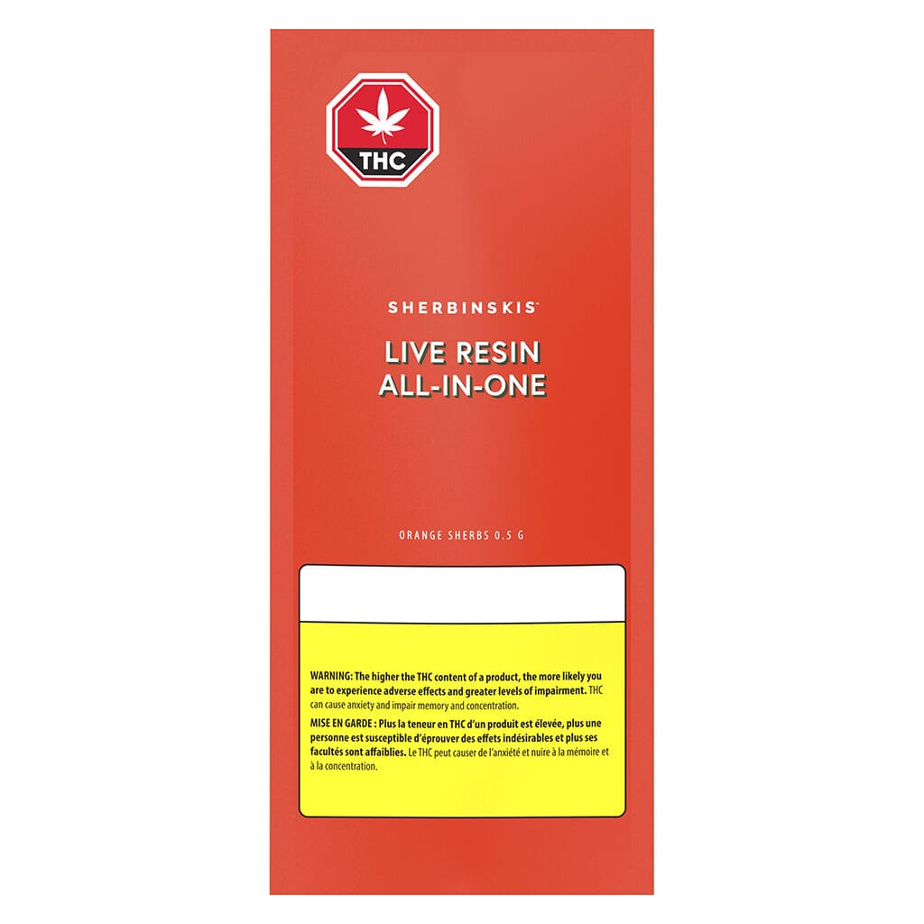 Orange Sherbs live resin extract is crafted with the same quality, love and passion as the California original. Made from fresh frozen, whole flower cannabis and finely tuned for the discerning consumer, this live resin vape in Sherbinskis-orange is sure to brighten your day!