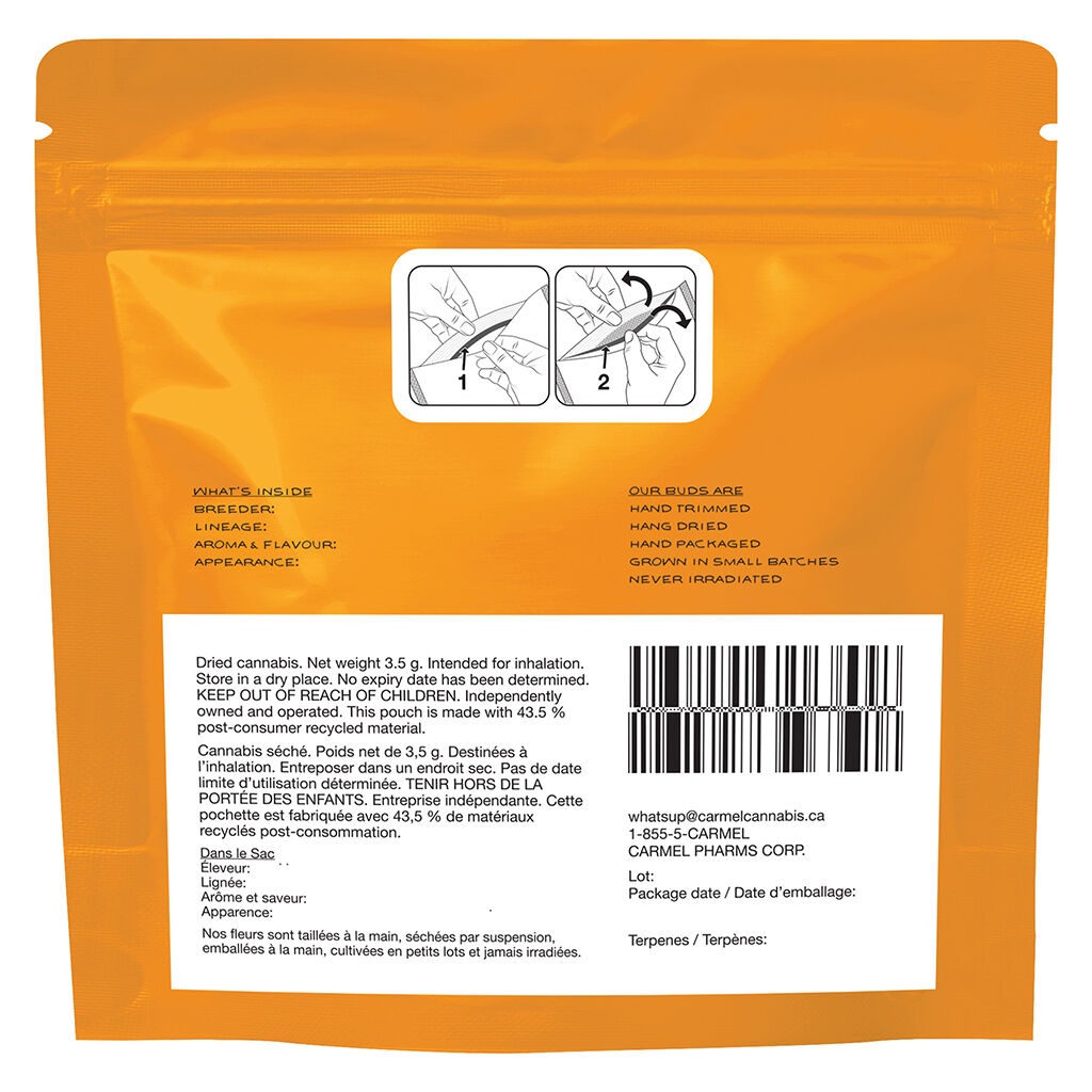 Is a cross of Wedding Cake and OZ Kush. Pheno-hunted in house, this Kush Cake was selected by our grow team for its sweet flavour profile. Dominant Terpenes in this flower are: Caryophyllene, Myrcene, and Farnessene. Pheno hunted by us in house, OZ Kush Cake was selected by our grow team for its sweet flavour profile. It has notes of candy, orange soda, and gas. Don’t let the smooth smoke fool you, you’ll feel this heavy hitter from your head down to your feet.