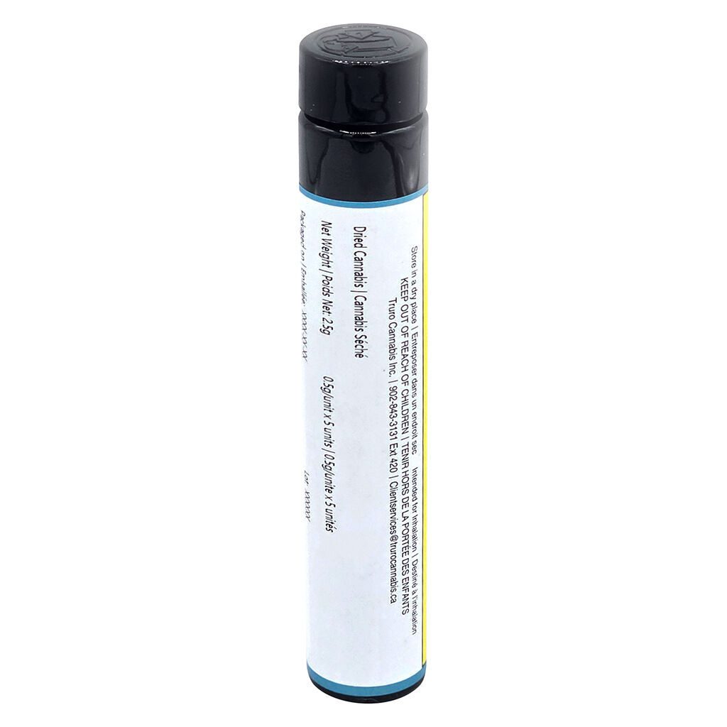 Peggys Puff Pre-Rolls 5 Pack by Truro includes five 0.5g hybrid pre-rolls with sour plum and citrus aromas from Black Cherry Punch x Tropicana Cookies, expertly rolled for consistency.