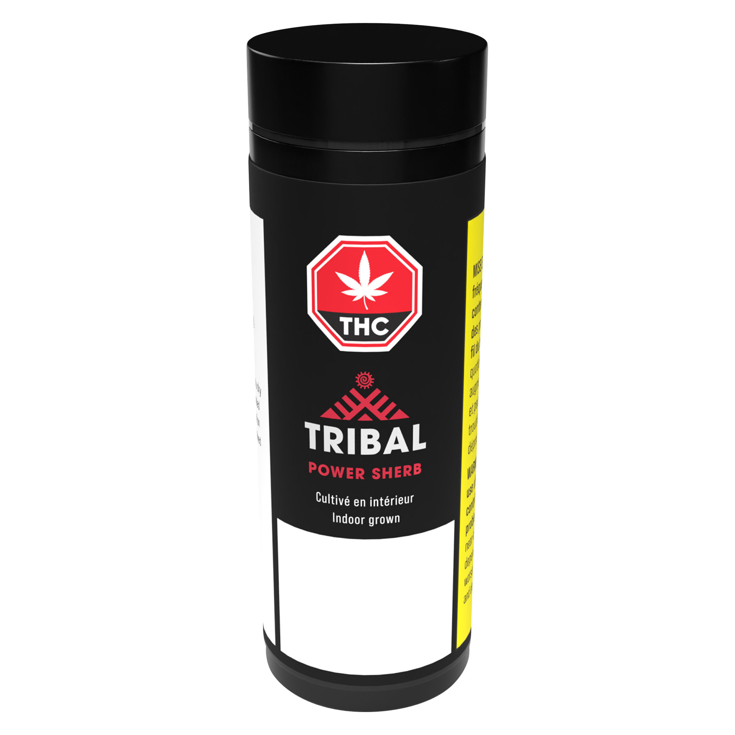 A powerful indica strain (Sunset Sherbert x CKS & Cream IX3; Breeder: Exotic Genetix) best appreciated for its smooth, sweet gasoline flavour. Tribal Power Sherb pre-rolls are produced with nothing but hang dried, slow cured, whole buds which have been consistently ground, and wrapped in premium RAW Classic cones.