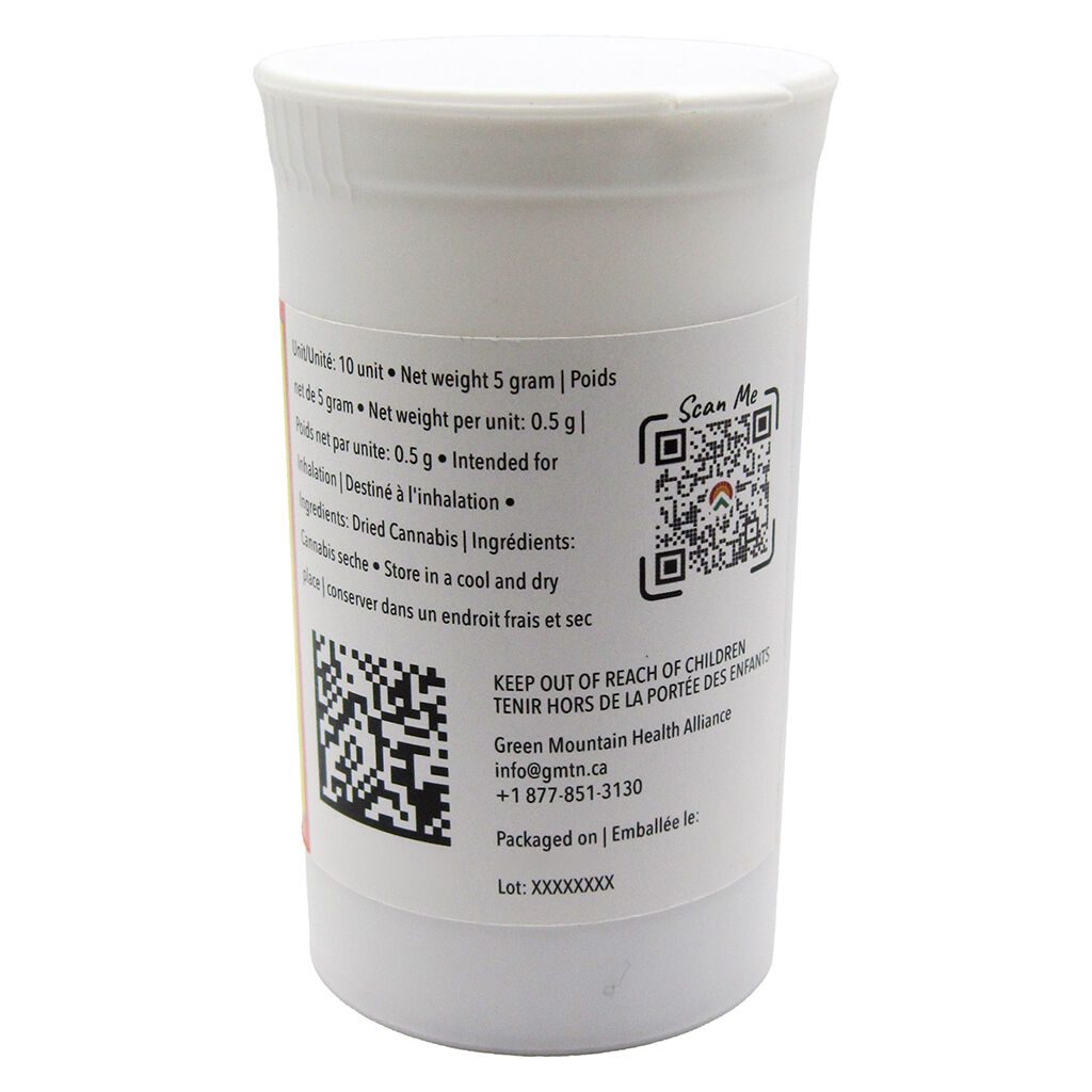 Romulan Grapefruit Pre-Rolls 10 Pack by Green Mountain includes 10 x 0.5g indica-dominant pre-rolls with earthy pine and grapefruit citrus aromas.