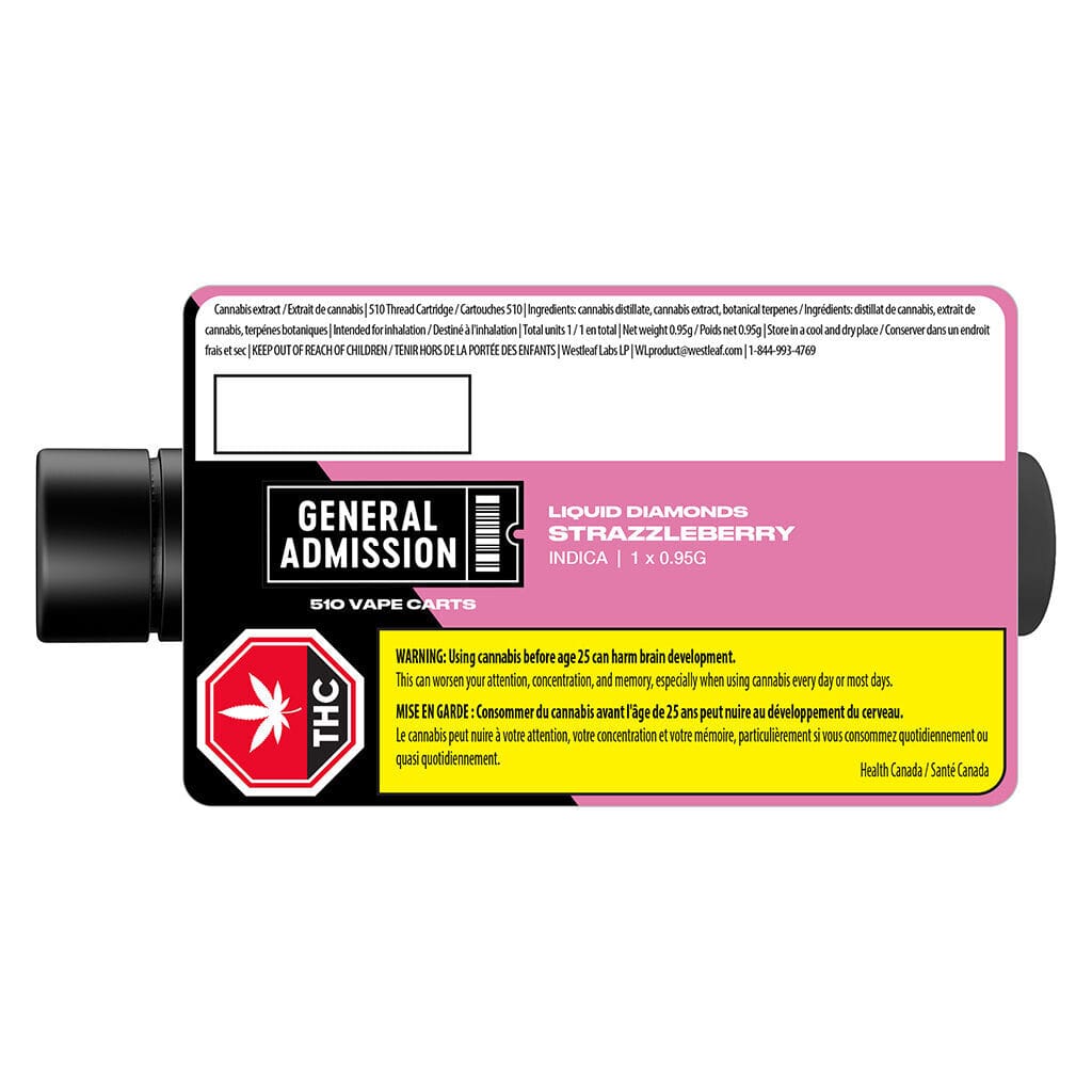 General Admission is a leader in the Canadian vape market for a reason. Their Strazzleberry Liquid Diamonds utilize premium hardware designed to handle the thick, high-potency oil without clogging or leaking. Whether you are a fan of their infused pre-rolls or their classic distillate carts, the Liquid Diamond series is the next step up in your cannabis journey—delivering more potency, more flavor, and a smoother draw every time.