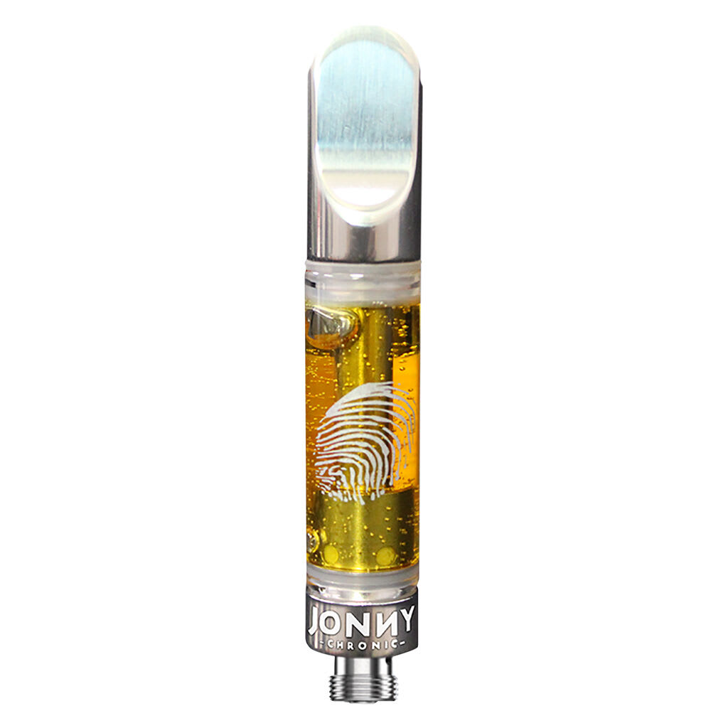 This live resin cartridge by Jonny Chronic is a sativa dominant strain with high THC and minimal CBD. Made from fresh frozen Tropicanna flower and run through a closed-loop column with butane. The end product is a highly potent extract with a high terpene content (5-10%).