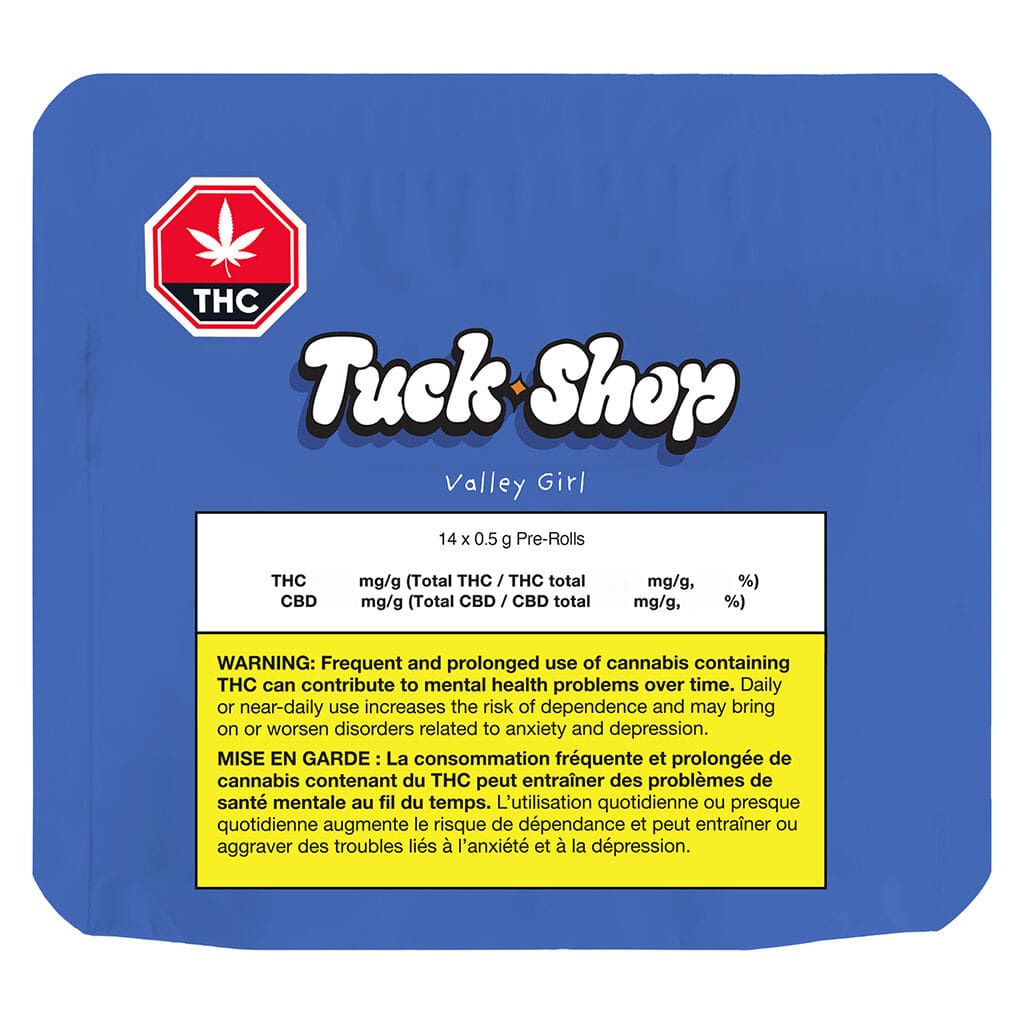 Stock up on the legendary Valley Girl Pre-Rolls 14 Pack by Tuck Shop. Featuring SFV OG x Face Off OG genetics, these 14 x 0.5g whole-flower joints offer a sweet, gassy funk and heavy indica effects. Shop now for premium bulk craft quality!
