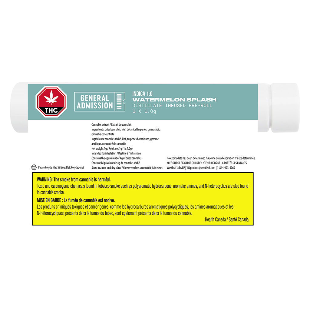 General Admission Watermelon distillate infused pre-rolls will make you question if you ever truly tasted watermelon. Sweet, fragrant and smells like you’ve carved a whole patch of watermelons, these pre-rolls will have you ready for the summer holiday even if the weather has other plans.